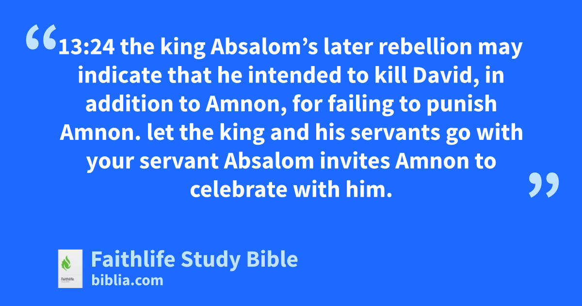 13:24 the king Absalom’s later rebellion may indicate that he intended to kill David, in addition to Amnon, for failing to punish Amnon.