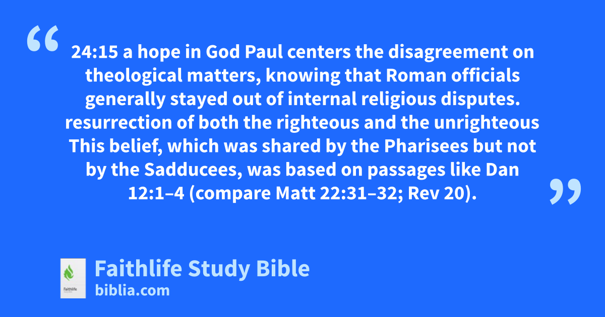 24:15 a hope in God Paul centers the disagreement on theological matters, knowing that Roman officials generally stayed out of internal religious disputes.