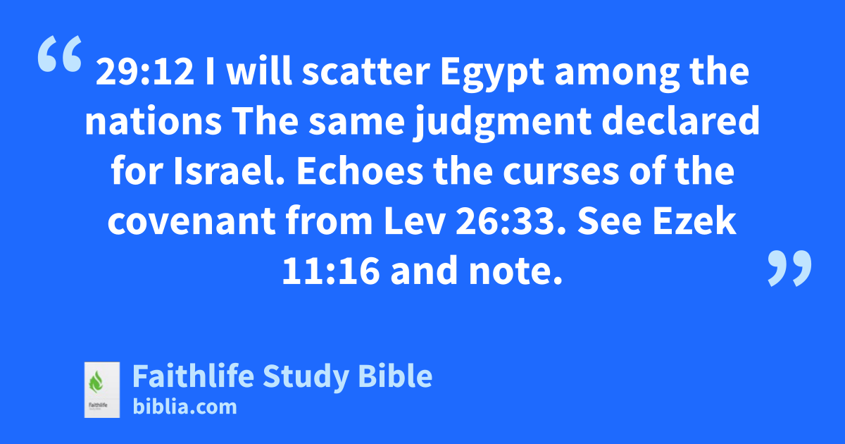 29:12 I will scatter Egypt among the nations The same judgment declared for Israel. Echoes the curses of the covenant from Lev 26:33. See Ezek 11:16 and note.