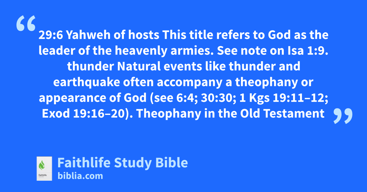 29:6 Yahweh of hosts This title refers to God as the leader of the heavenly armies. See note on Isa 1:9.