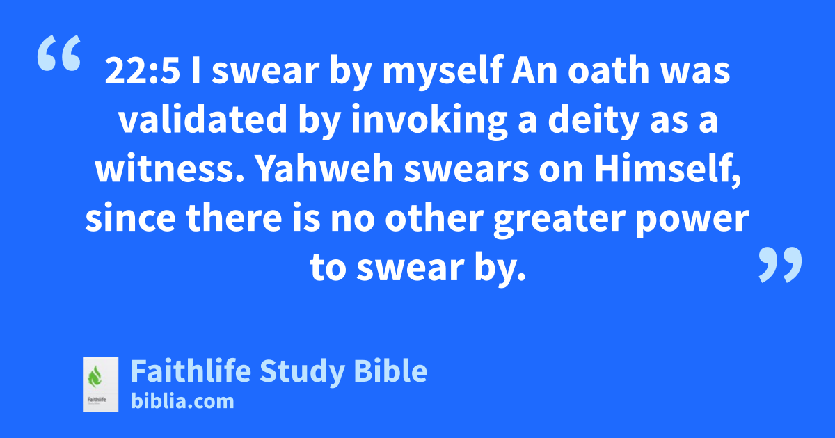 22:5 I swear by myself An oath was validated by invoking a deity as a witness. Yahweh swears on Himself, since there is no other greater power to swear by.