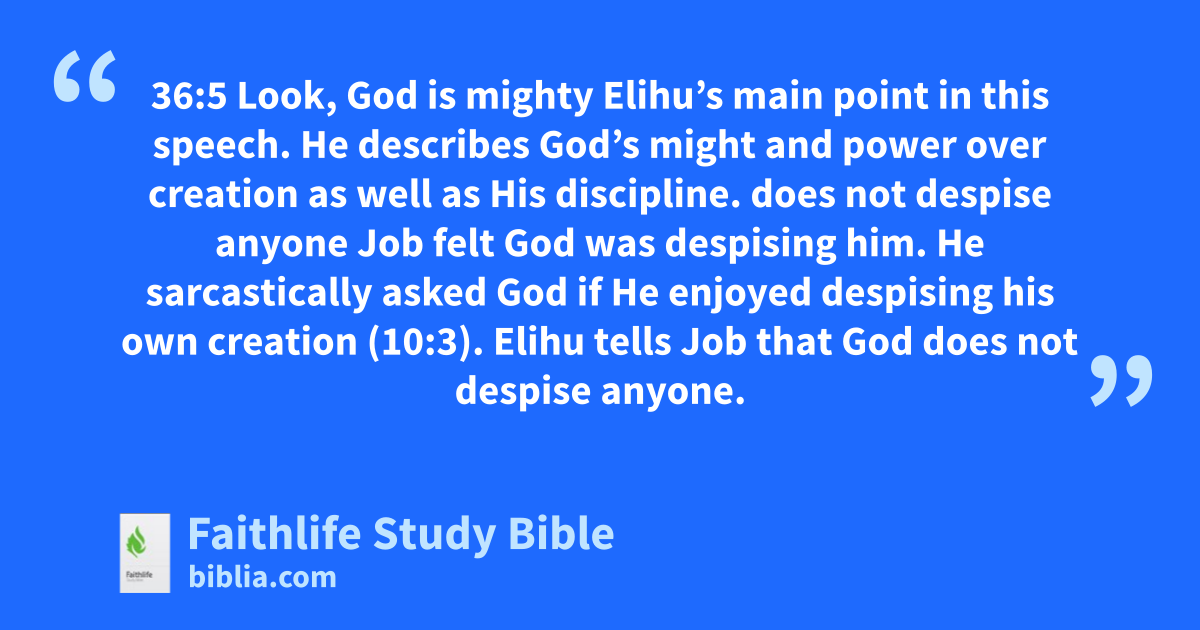 36:5 Look, God is mighty Elihu’s main point in this speech. He describes God’s might and power over creation as well as His discipline.