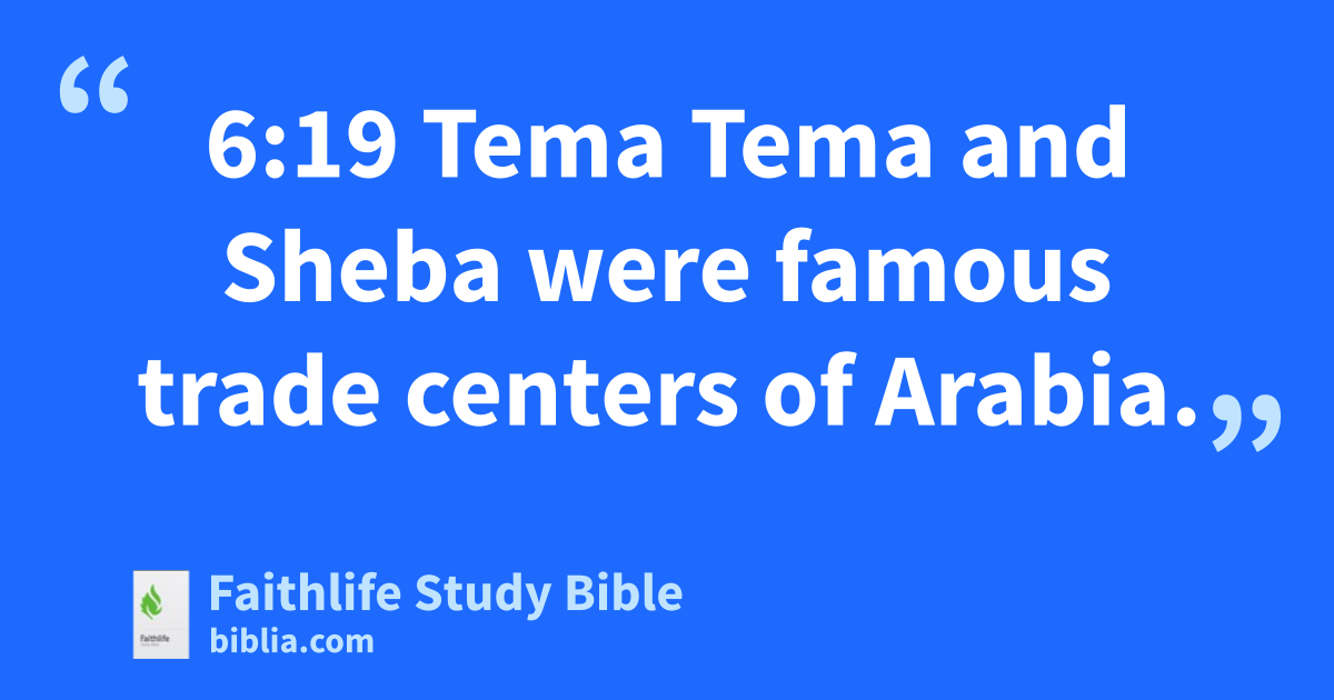 6:19 Tema Tema and Sheba were famous trade centers of Arabia.