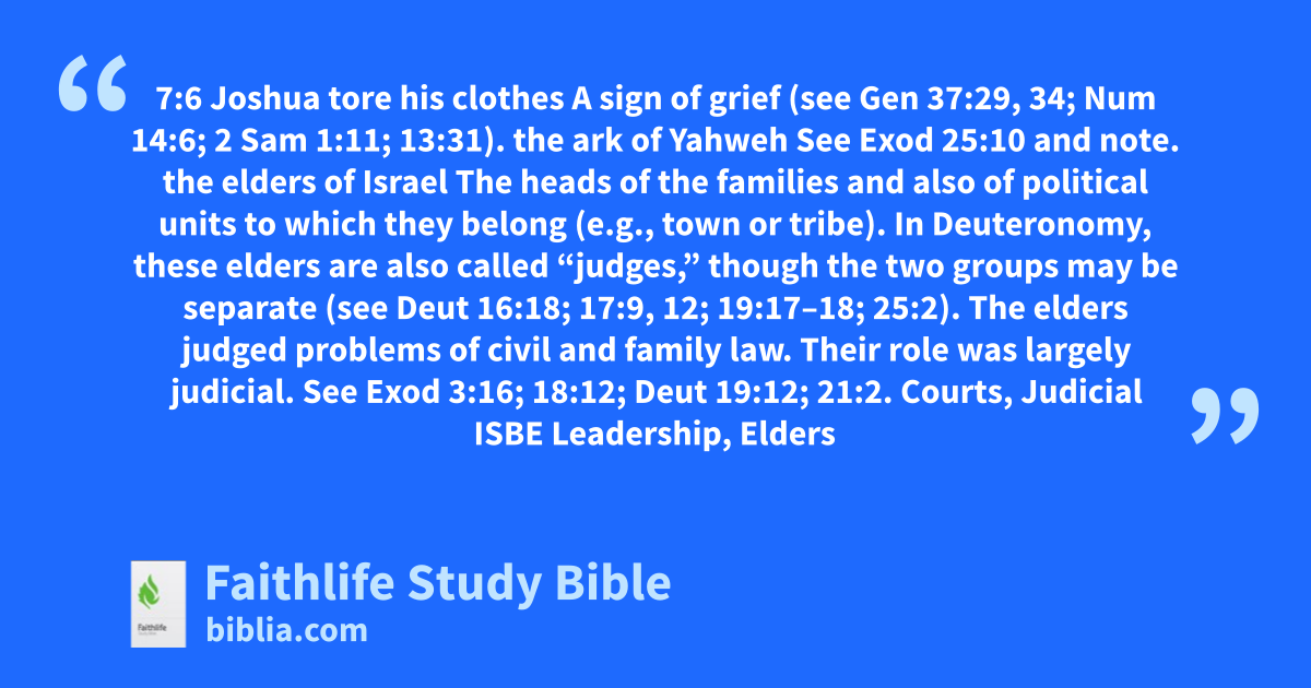 7:6 Joshua tore his clothes A sign of grief (see Gen 37:29, 34; Num 14:6; 2 Sam 1:11; 13:31).