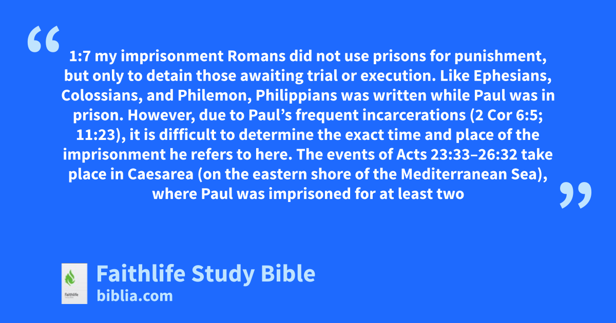 1:7 my imprisonment Romans did not use prisons for punishment, but only to detain those awaiting trial or execution.