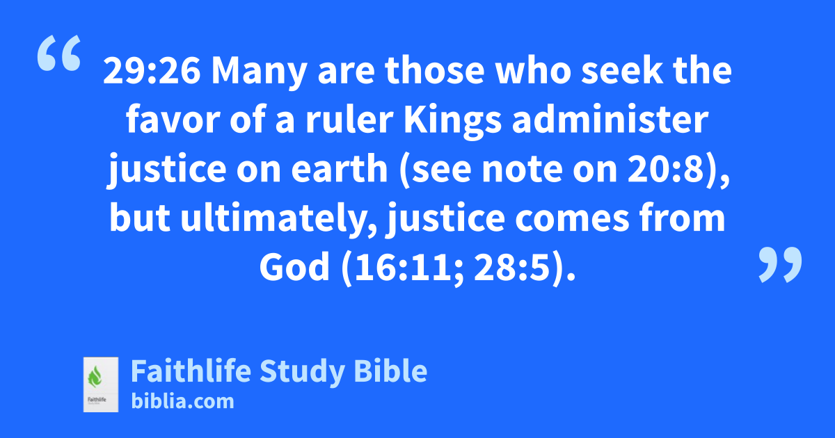 29:26 Many are those who seek the favor of a ruler Kings administer justice on earth (see note on 20:8), but ultimately, justice comes from God (16:11; 28:5).