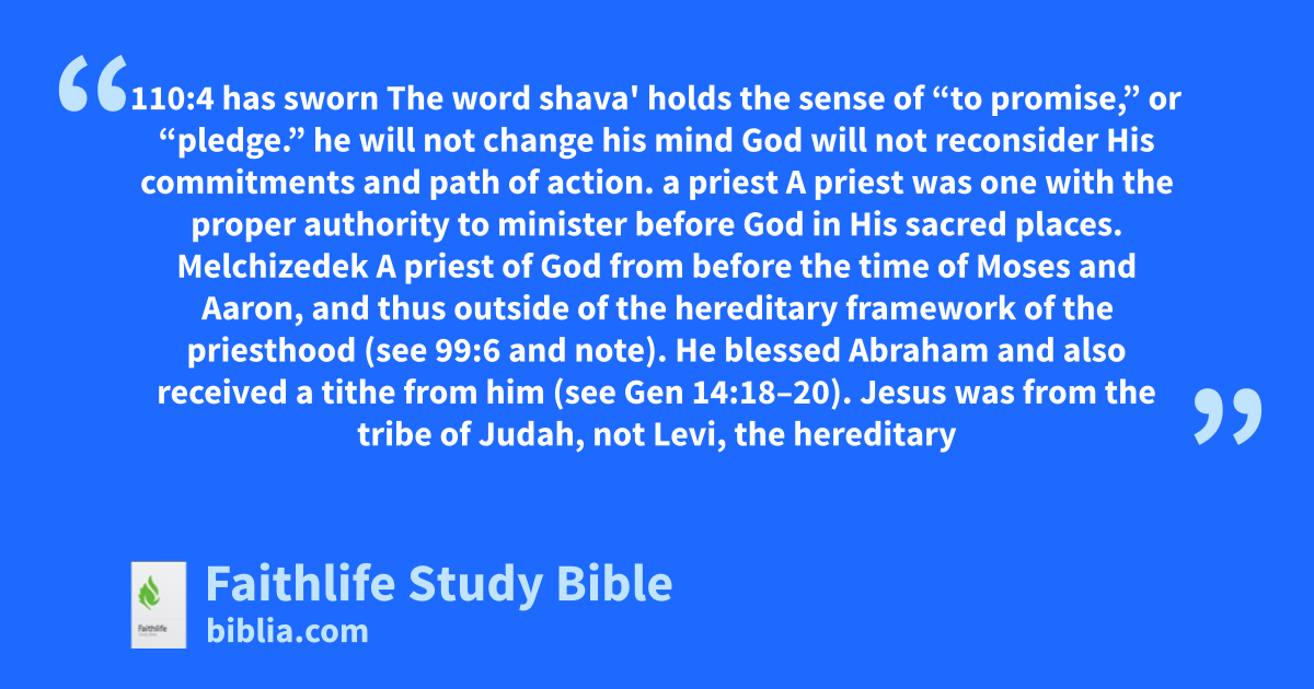 110:4 has sworn The word shava' holds the sense of “to promise,” or “pledge.”