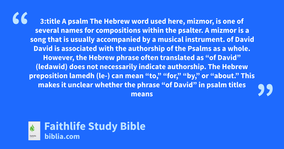 3:title A psalm The Hebrew word used here, mizmor, is one of several names for compositions within the psalter. A mizmor is a song that is usually accompanied by a musical instrument.