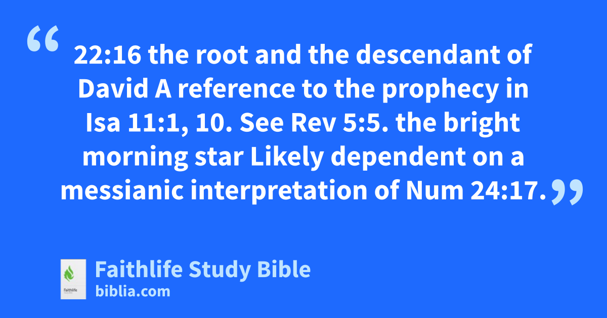 22:16 the root and the descendant of David A reference to the prophecy in Isa 11:1, 10. See Rev 5:5.