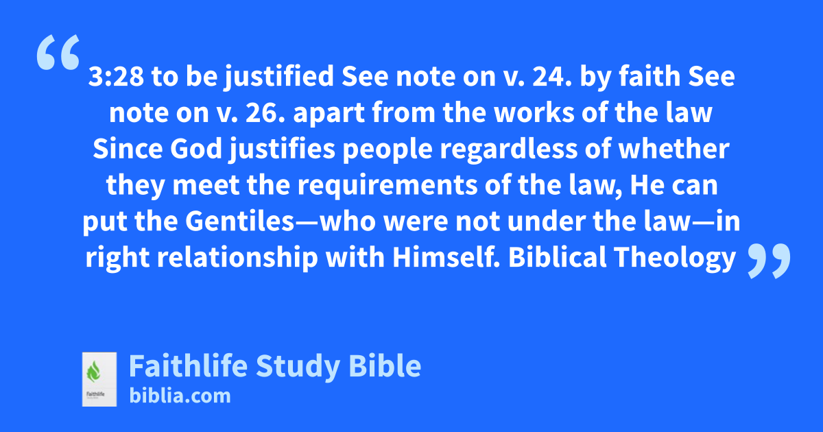 apart from the works of the law Since God justifies people regardless of whether they meet the requirements of the law, He can put the Gentiles—who were not under the law—in right relationship with Himself.