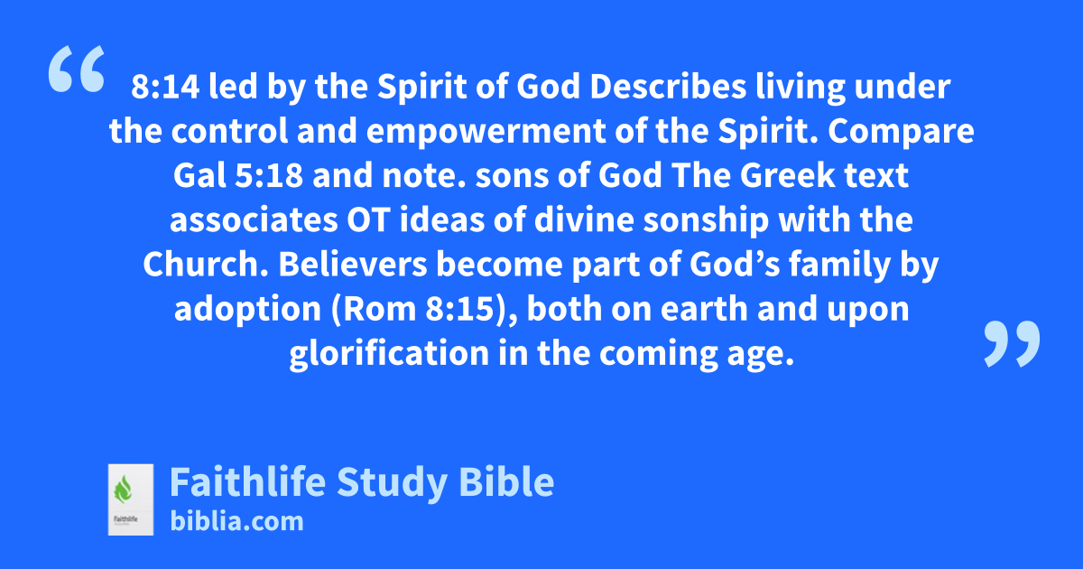 8:14 led by the Spirit of God Describes living under the control and empowerment of the Spirit. Compare Gal 5:18 and note.