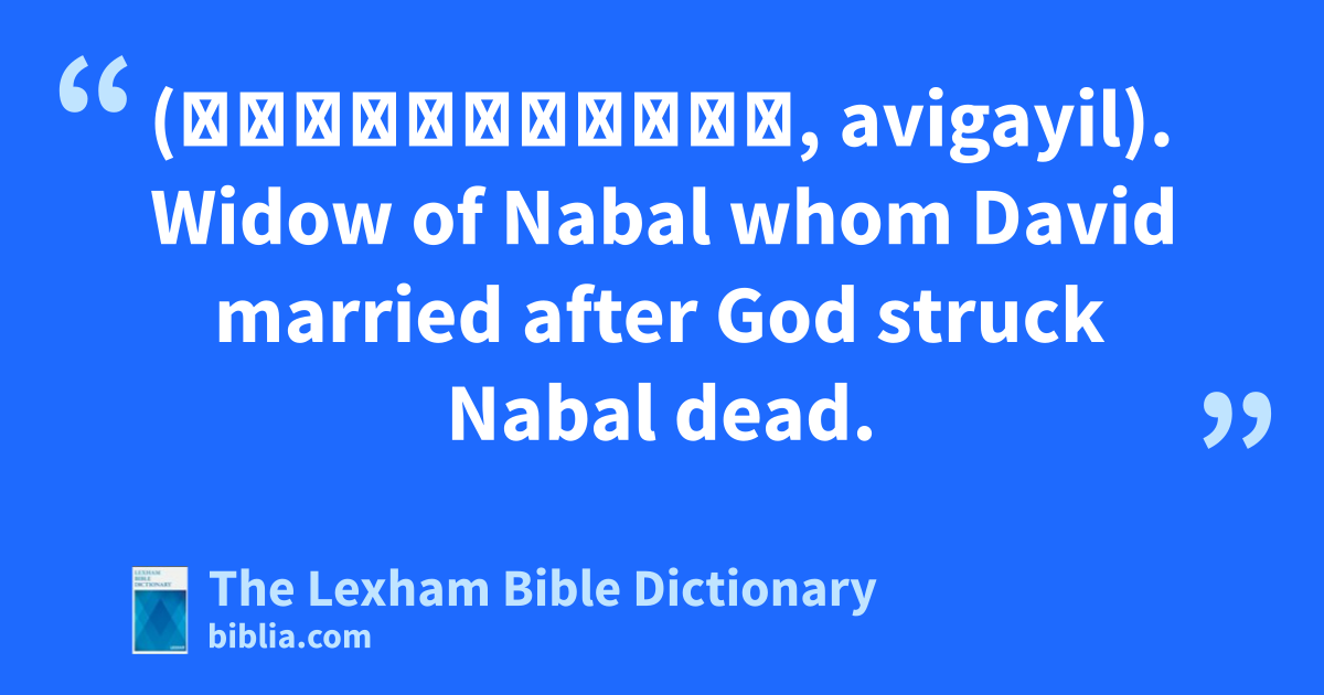 Abigail, Wife of David (אֲבִיגַ֫יִל, avigayil). Widow of Nabal whom David married after God struck Nabal dead.