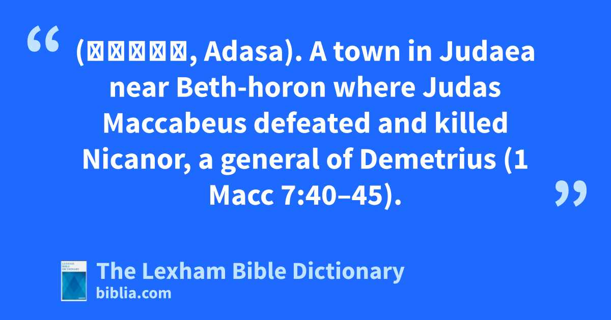 Adasa of Judah (Αδασά, Adasa). A town in Judaea near Beth-horon where Judas Maccabeus defeated and killed Nicanor, a general of Demetrius (1 Macc 7:40–45).