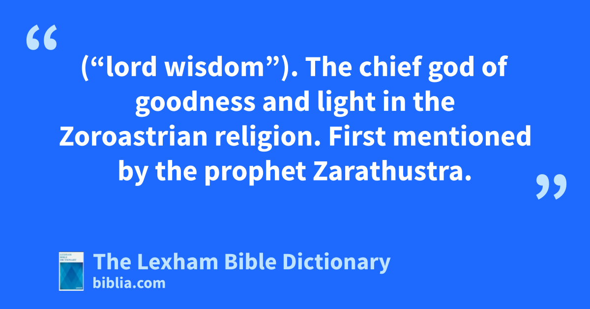 Ahura Mazda (“lord wisdom”). The chief god of goodness and light in the Zoroastrian religion. First mentioned by the prophet Zarathustra.