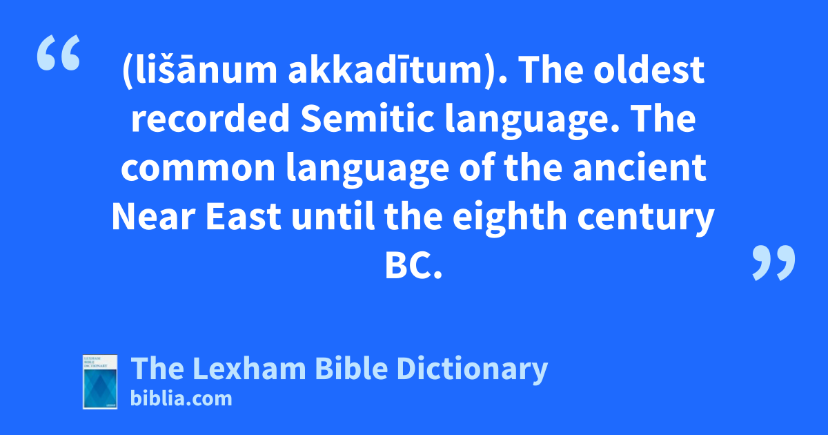 Akkadian Language (lišānum akkadītum). The oldest recorded Semitic language. The common language of the ancient Near East until the eighth century bc.