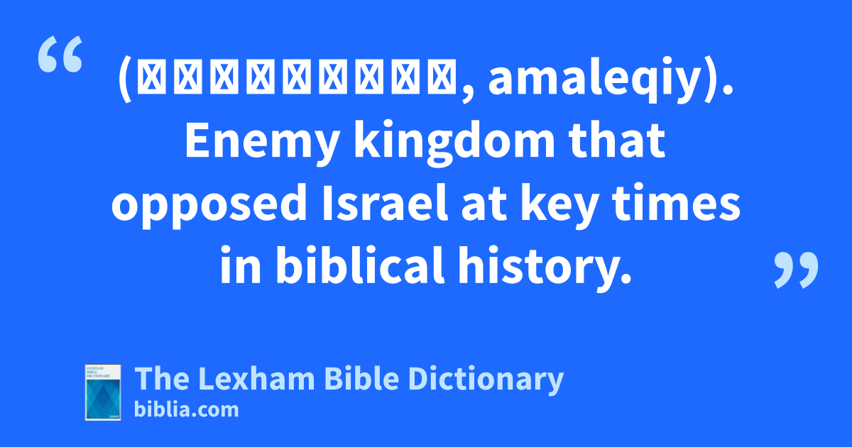 Amalekites (עֲמָלֵקִי, amaleqiy). Enemy kingdom that opposed Israel at key times in biblical history.