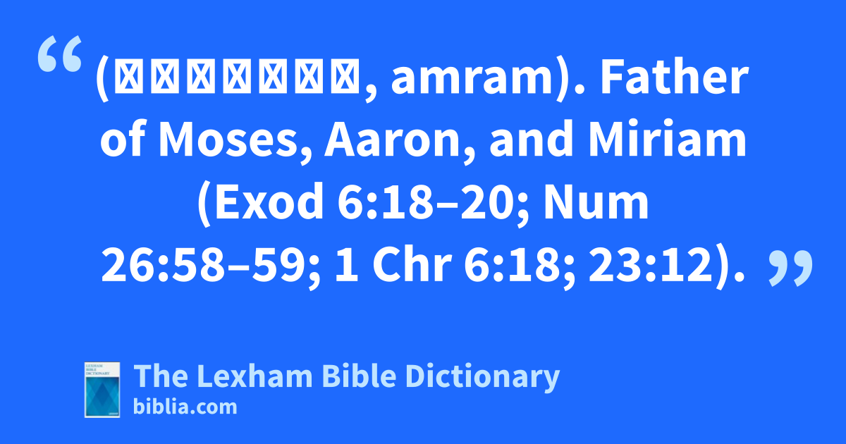 Amram, Son of Kohath (עַמְרָם, amram). Father of Moses, Aaron, and Miriam (Exod 6:18–20; Num 26:58–59; 1 Chr 6:18; 23:12).