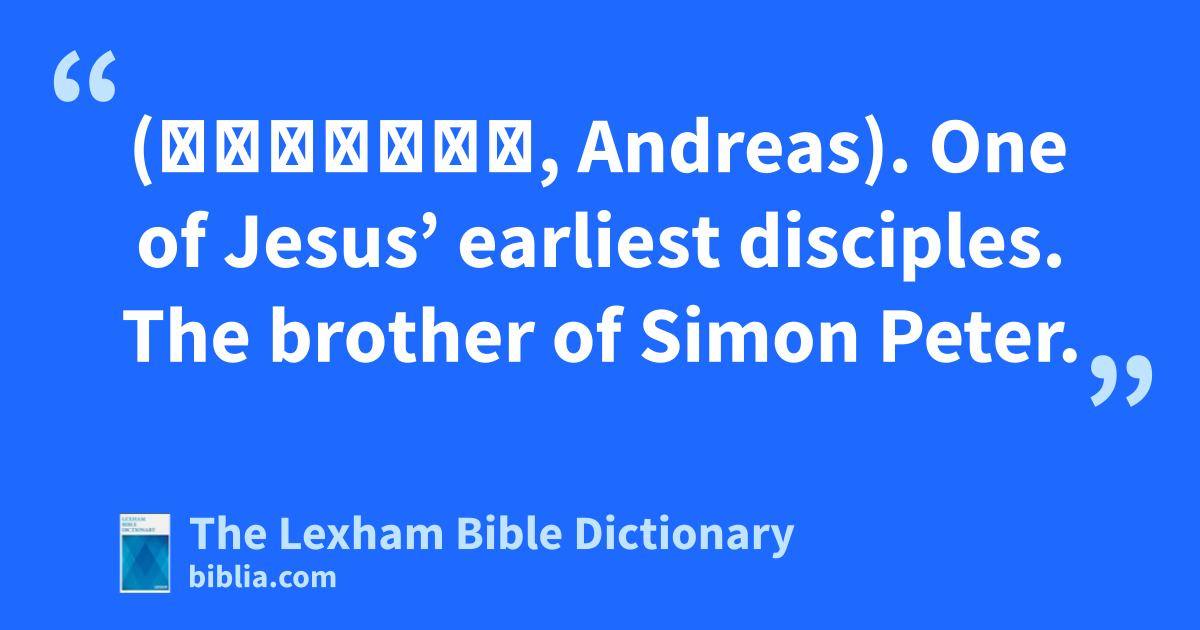 Andrew the Apostle (Ἀνδρέας, Andreas). One of Jesus’ earliest disciples. The brother of Simon Peter.