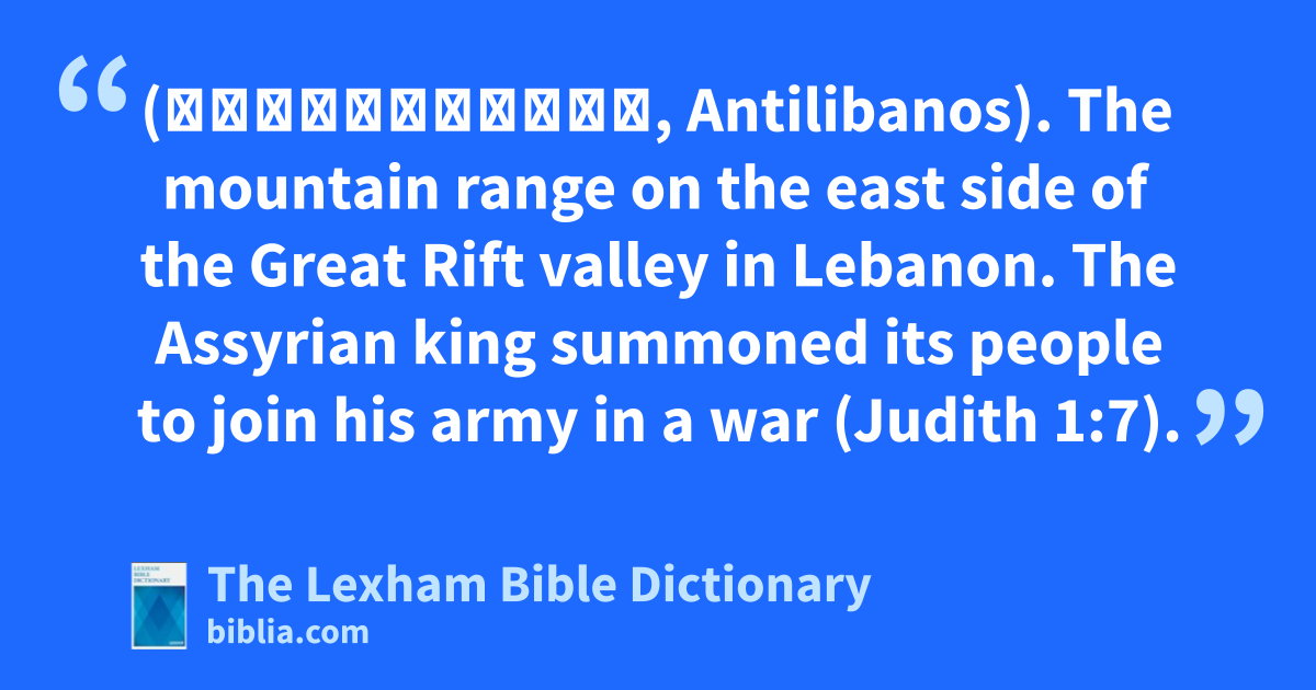 Anti-Lebanon (Ἀντιλιβανος, Antilibanos). The mountain range on the east side of the Great Rift valley in Lebanon. The Assyrian king summoned its people to join his army in a war (Judith 1:7).