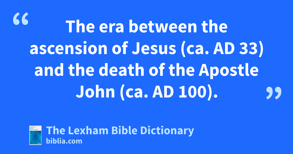 Apostolic Age The era between the ascension of Jesus (ca. ad 33) and the death of the Apostle John (ca. ad 100).