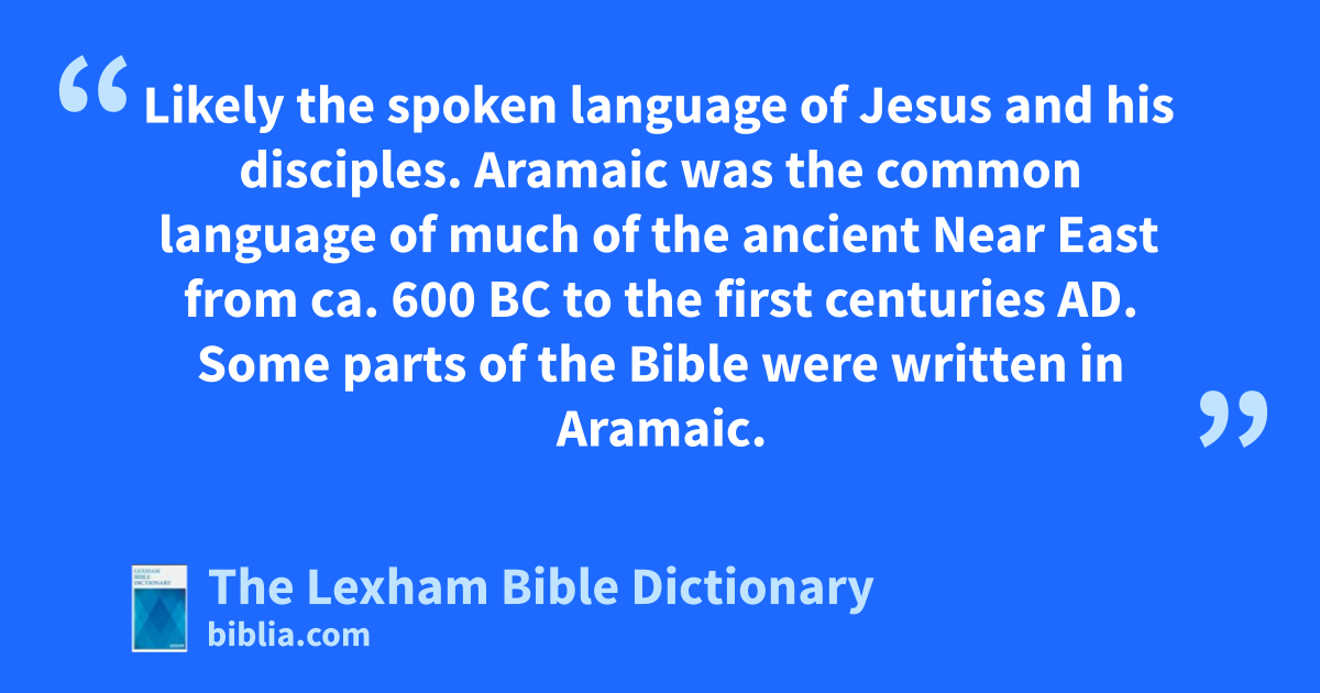 Aramaic Language Likely the spoken language of Jesus and his disciples. Aramaic was the common language of much of the ancient Near East from ca. 600 bc to the first centuries ad. Some parts of the Bible were written in Aramaic.