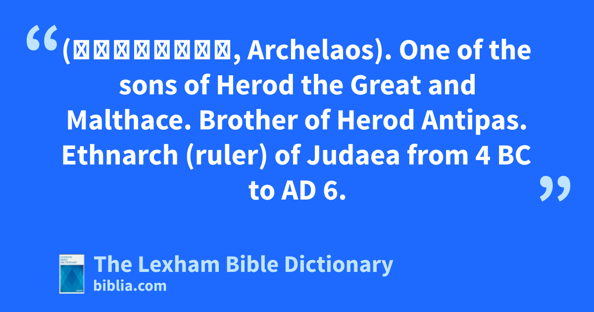 Archelaus, Son of Herod (Ἀρχέλαος, Archelaos). One of the sons of Herod the Great and Malthace. Brother of Herod Antipas. Ethnarch (ruler) of Judaea from 4 bc to ad 6.