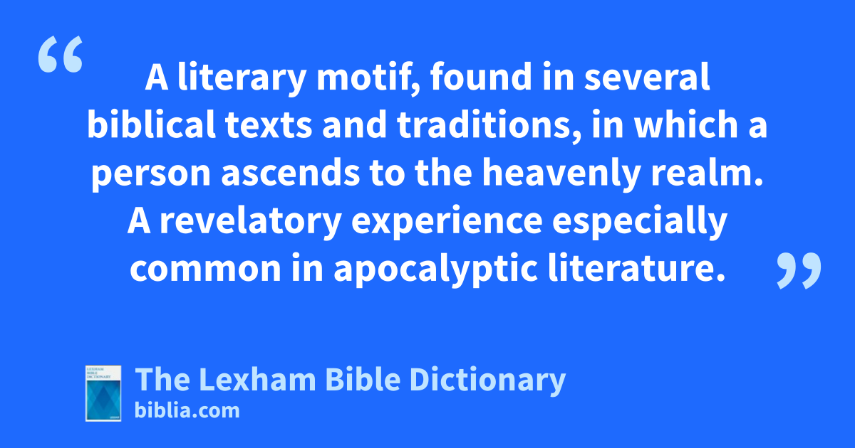 Ascent to Heaven A literary motif, found in several biblical texts and traditions, in which a person ascends to the heavenly realm. A revelatory experience especially common in apocalyptic literature.
