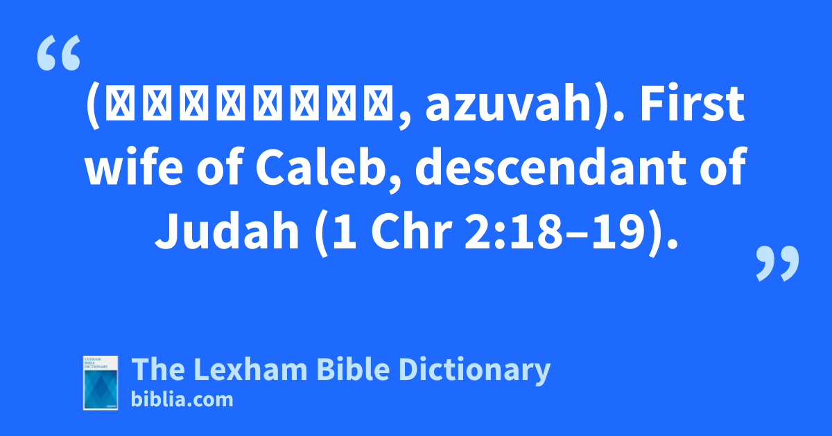 Azubah, Wife of Caleb (עֲזוּבָה, azuvah). First wife of Caleb, descendant of Judah (1 Chr 2:18–19).
