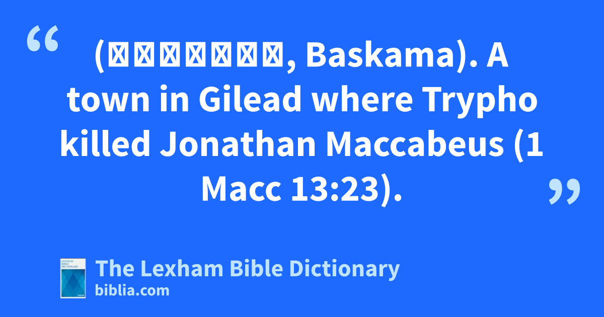 Baskama (Βασκαμα, Baskama). A town in Gilead where Trypho killed Jonathan Maccabeus (1 Macc 13:23).