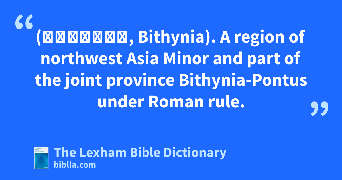 Bithynia (Βιθυνία, Bithynia). A region of northwest Asia Minor and part of the joint province Bithynia-Pontus under Roman rule.