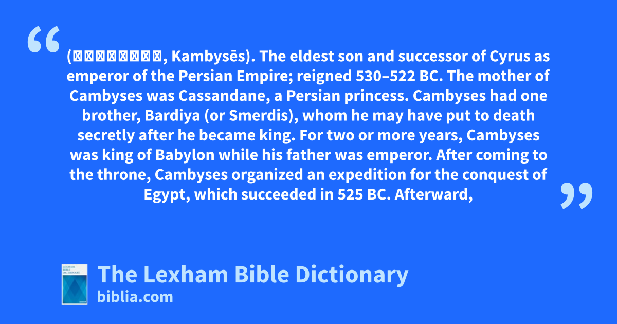 Cambyses II (Καμβύσης, Kambysēs). The eldest son and successor of Cyrus as emperor of the Persian Empire; reigned 530–522 bc.