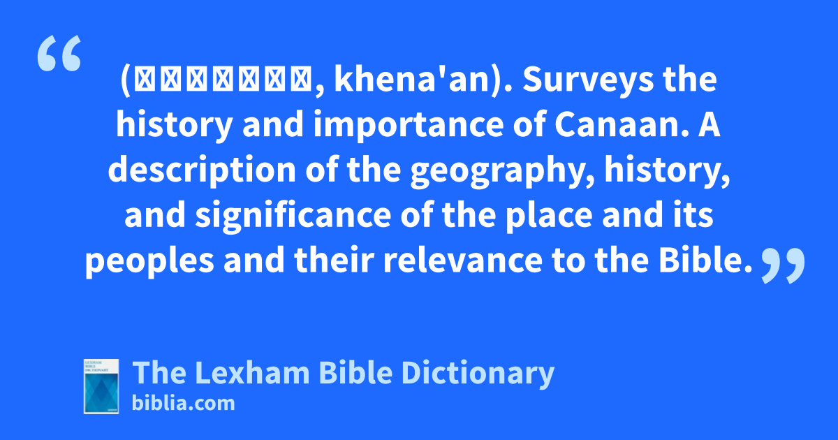 Canaan (כְנַעַן, khena'an). Surveys the history and importance of Canaan. A description of the geography, history, and significance of the place and its peoples and their relevance to the Bible.