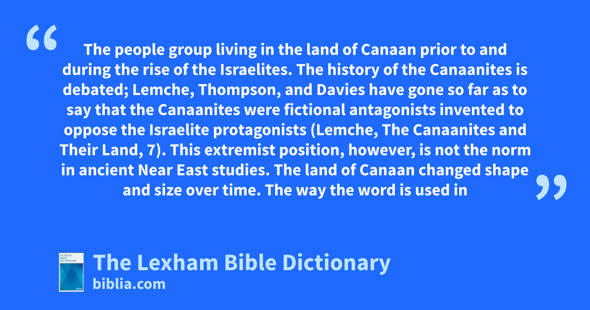 Canaanites The people group living in the land of Canaan prior to and during the rise of the Israelites.
