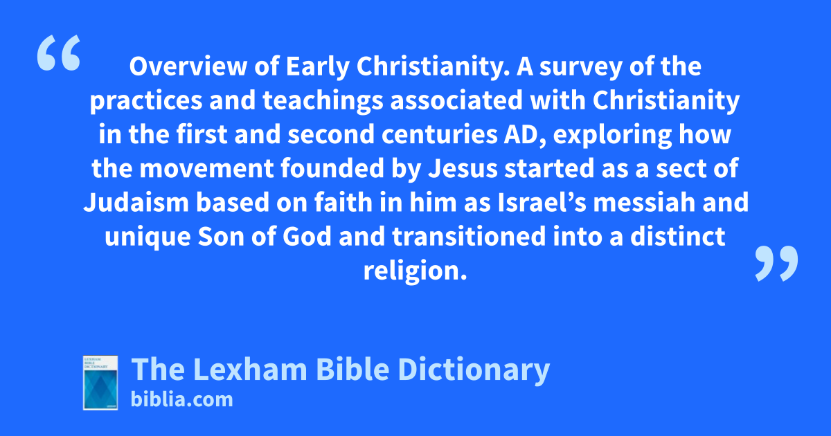 Christianity, Overview of Early Overview of Early Christianity. A survey of the practices and teachings associated with Christianity in the first and second centuries ad, exploring how the movement founded by Jesus started as a sect of Judaism based on faith in him as Israel’s messiah and unique Son of God and transitioned into a distinct religion.