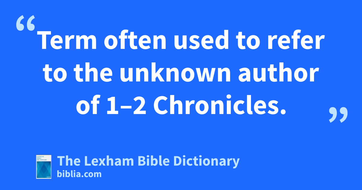 Chronicler Term often used to refer to the unknown author of 1–2 Chronicles.