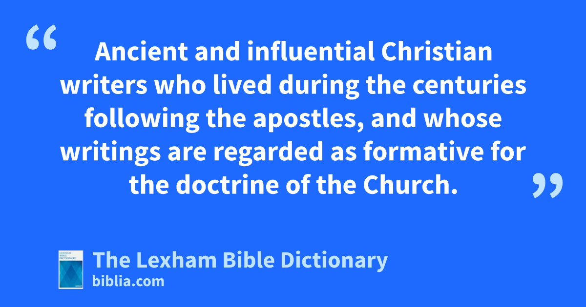 Church Fathers Ancient and influential Christian writers who lived during the centuries following the apostles, and whose writings are regarded as formative for the doctrine of the Church.