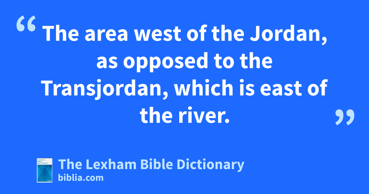 Cisjordan The area west of the Jordan, as opposed to the Transjordan, which is east of the river.