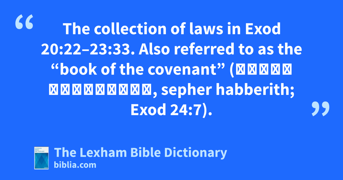 Covenant Code The collection of laws in Exod 20:22–23:33. Also referred to as the “book of the covenant” (סֵפֶר הַבְּרִית, sepher habberith; Exod 24:7).
