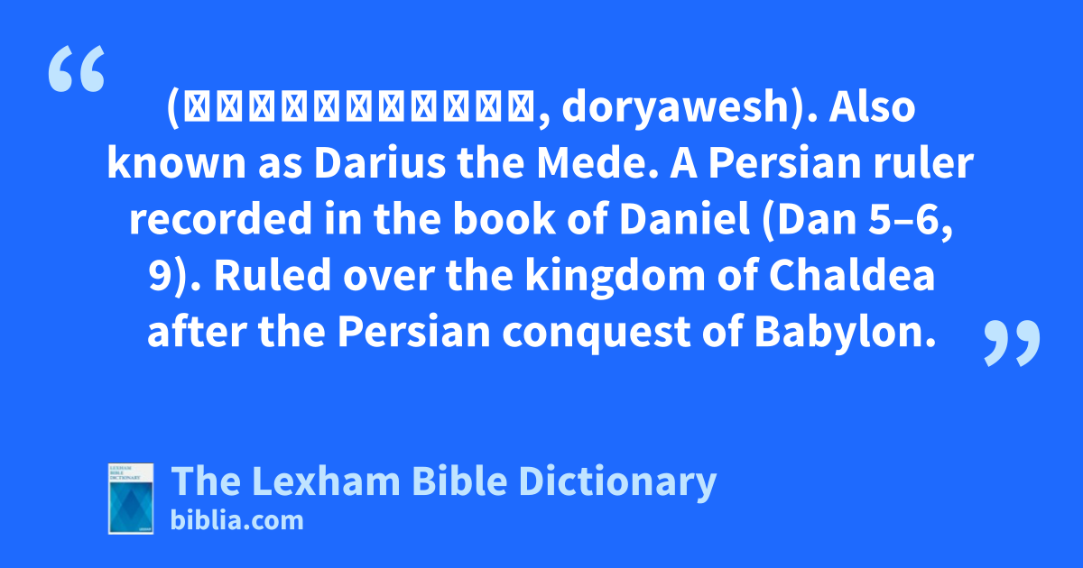 Darius, Son of Ahasuerus (דָּרְיָוֶשׁ, doryawesh). Also known as Darius the Mede. A Persian ruler recorded in the book of Daniel (Dan 5–6, 9). Ruled over the kingdom of Chaldea after the Persian conquest of Babylon.