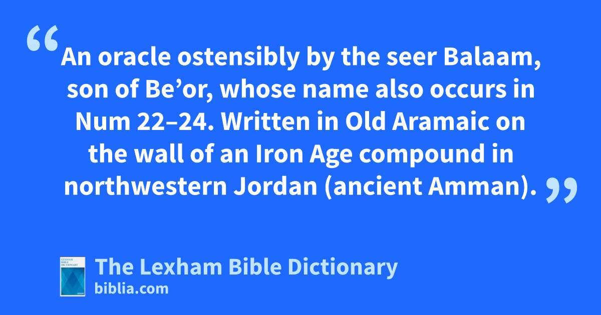Deir Alla Inscription An oracle ostensibly by the seer Balaam, son of Be’or, whose name also occurs in Num 22–24. Written in Old Aramaic on the wall of an Iron Age compound in northwestern Jordan (ancient Amman).