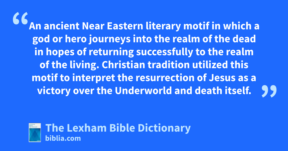 Descent into the Underworld An ancient Near Eastern literary motif in which a god or hero journeys into the realm of the dead in hopes of returning successfully to the realm of the living. Christian tradition utilized this motif to interpret the resurrection of Jesus as a victory over the Underworld and death itself.