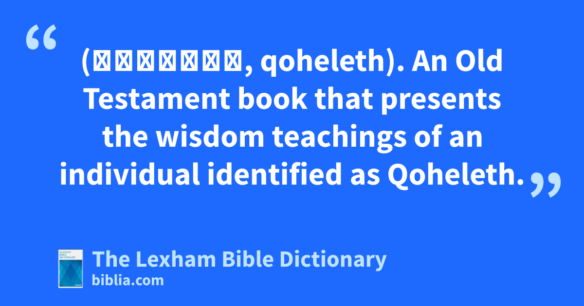 Ecclesiastes, Book Of (קֺהֶלֶת, qoheleth). An Old Testament book that presents the wisdom teachings of an individual identified as Qoheleth.