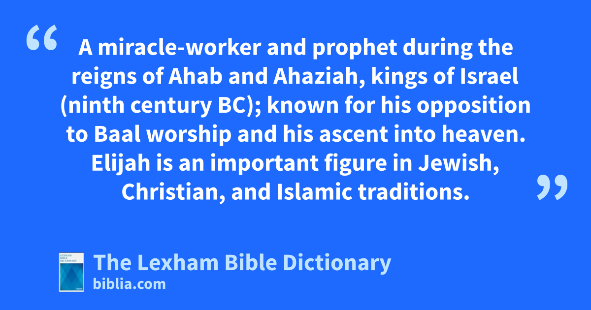 Elijah the Prophet A miracle-worker and prophet during the reigns of Ahab and Ahaziah, kings of Israel (ninth century bc); known for his opposition to Baal worship and his ascent into heaven. Elijah is an important figure in Jewish, Christian, and Islamic traditions.