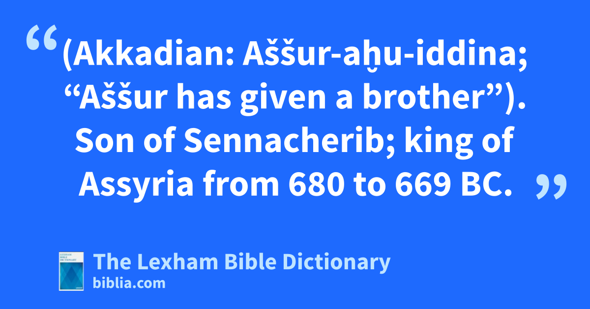 Esarhaddon (Akkadian: Aššur-aḫu-iddina; “Aššur has given a brother”). Son of Sennacherib; king of Assyria from 680 to 669 bc.