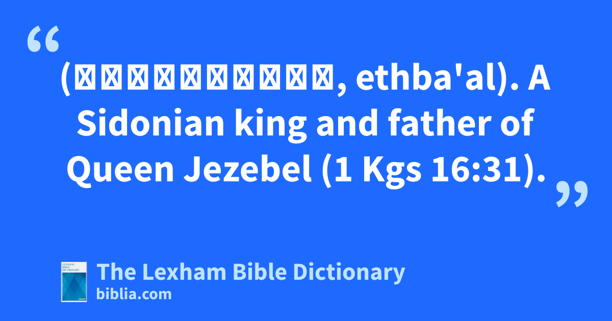 Ethbaal (אֶתְבַּעַל, ethba'al). A Sidonian king and father of Queen Jezebel (1 Kgs 16:31).