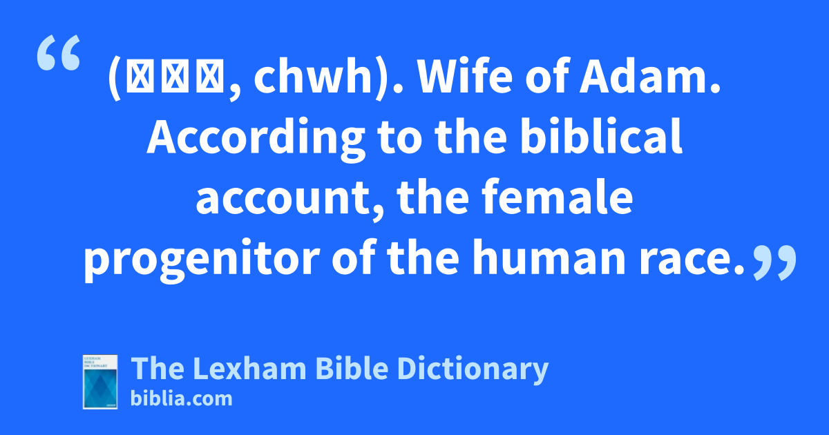 Eve (חוה, chwh). Wife of Adam. According to the biblical account, the female progenitor of the human race.