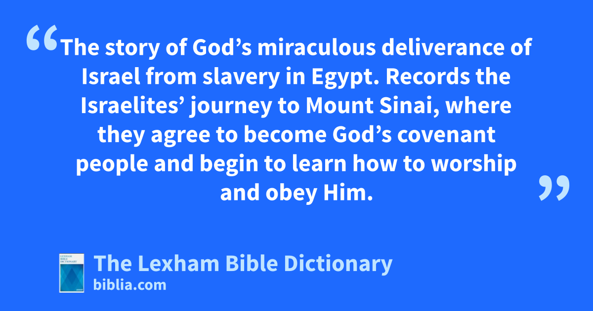 Exodus, Book Of The story of God’s miraculous deliverance of Israel from slavery in Egypt. Records the Israelites’ journey to Mount Sinai, where they agree to become God’s covenant people and begin to learn how to worship and obey Him.