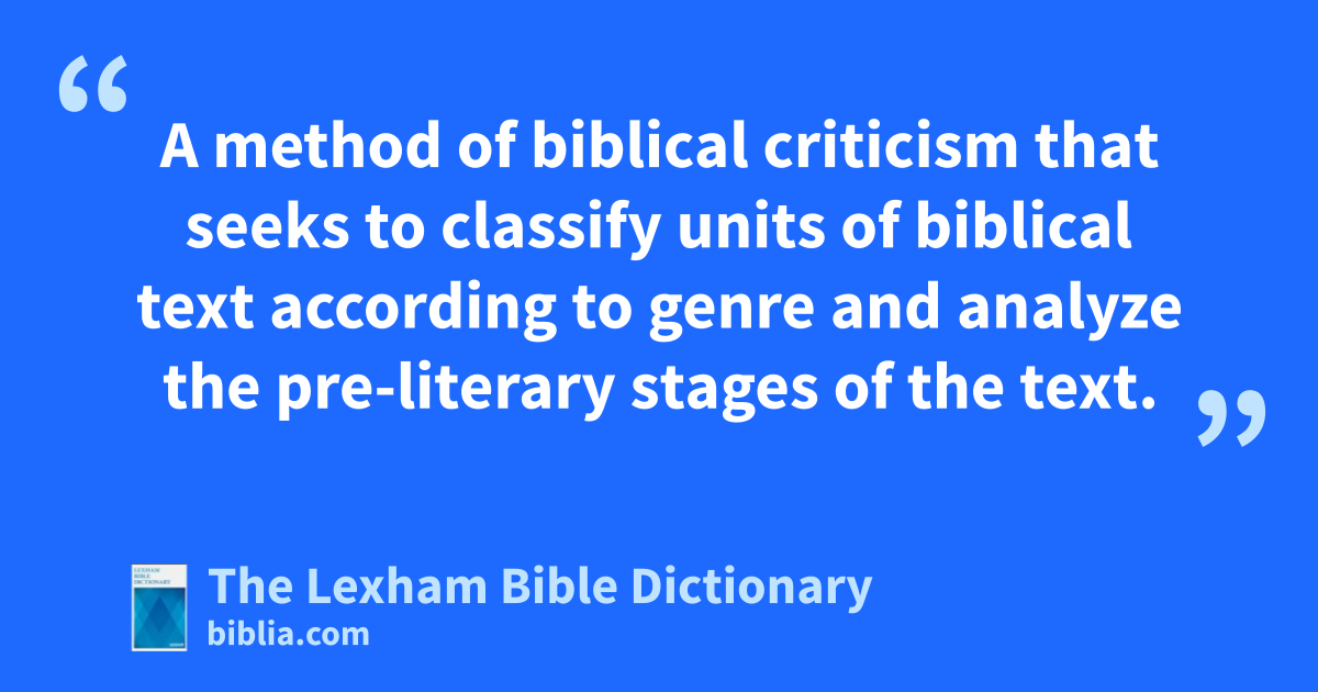 Form Criticism A method of biblical criticism that seeks to classify units of biblical text according to genre and analyze the pre-literary stages of the text.