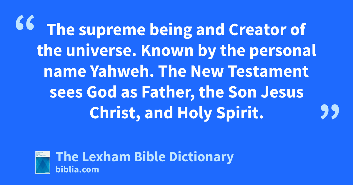 God The supreme being and Creator of the universe. Known by the personal name Yahweh. The New Testament sees God as Father, the Son Jesus Christ, and Holy Spirit.