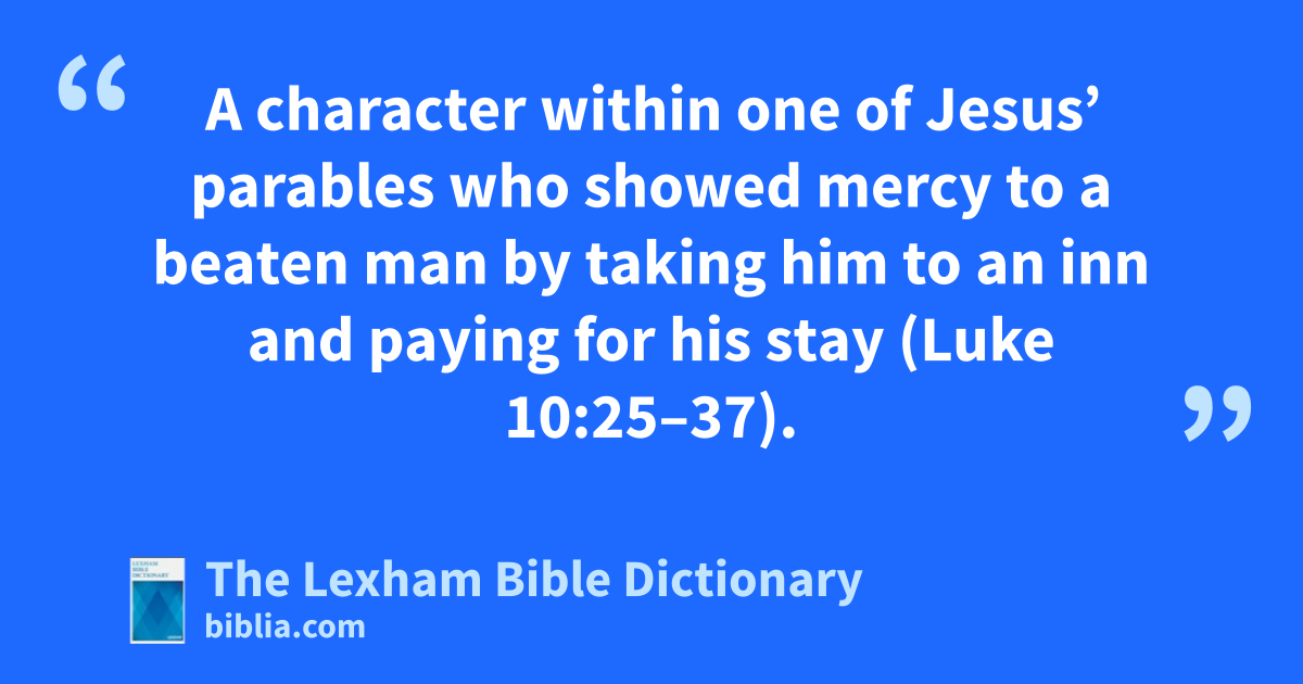 Good Samaritan A character within one of Jesus’ parables who showed mercy to a beaten man by taking him to an inn and paying for his stay (Luke 10:25–37).